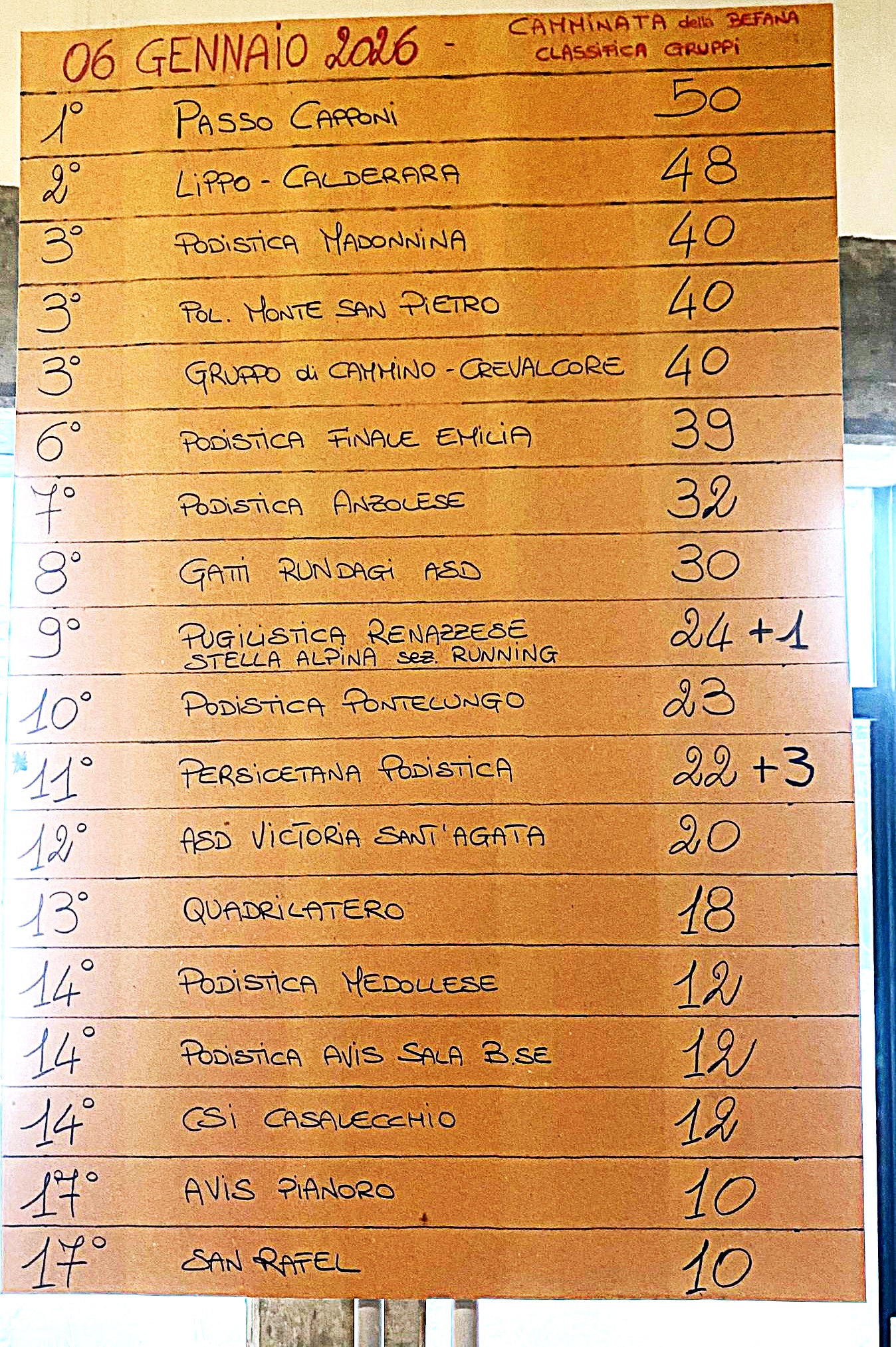 «Il meteo ci ha tenuti sulle spine fino all’ultimo – racconta la responsabile organizzativa Monica Barchetti - Nonostante tutto siamo contenti dello svolgimento e dei risultati, forse un po’ condizionati dalla nevicata iniziata già dalla prima mattina».